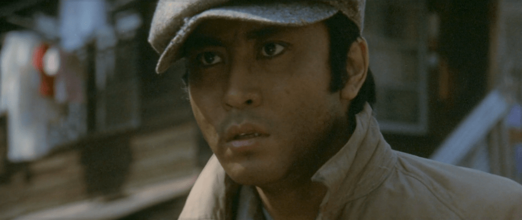 Once again, the impeccable casting goes a long way to compliment Fukasaku’s direction. Kitaoji Kinya’s incredible intensity is used to its full potential in both quiet and dramatic moments, eyes wide and face burning with extreme terror or anger at the flick of a switch. Chiba Sonny’s physicality shines in Katsutoshi’s outbursts of violence, ferociously attacking anything and anyone in his way. The supporting characters all get their moments to shine – all except perhaps Kaji Meiko, underused in the role of a war widow losing control over her destiny, with only glimpses of Kaji’s versatility on display here.