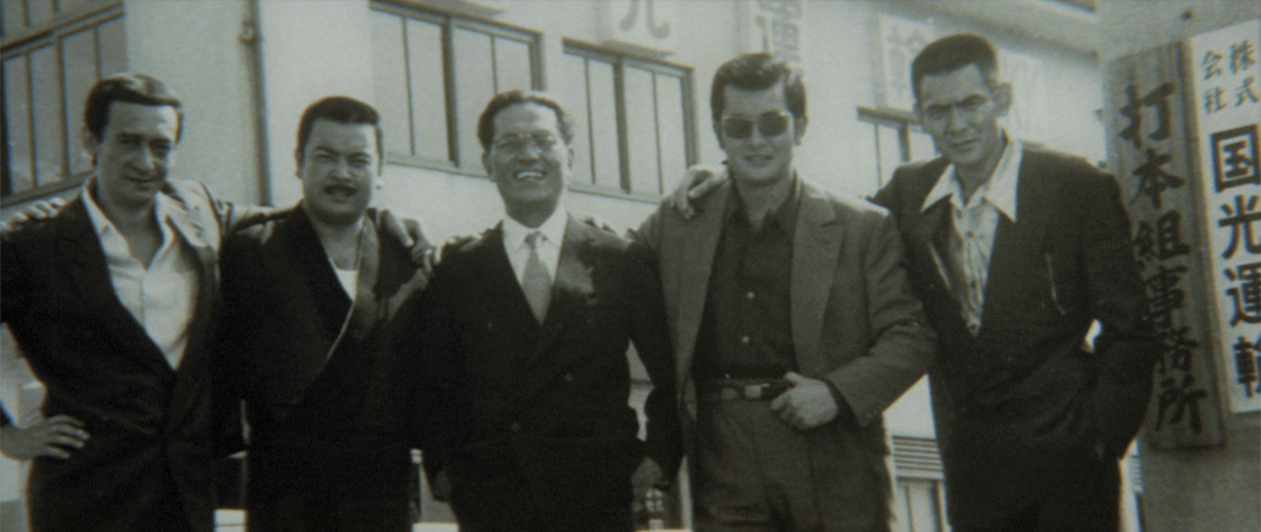 In September of that year, a group of men happily walk down the Hiroshima streets: it’s our friend Hirono Shōzō, his kyōdai (sword brother) Uchimoto Noboru, and Sugihara Fumio (respectively second and first in line to the prosperous Muraoka family), with imposing boxer Wakamatsu in tow. Hirono has finally been paroled but is stuck in Kure, due to his release terms; nonetheless, the group suggests a wrestling show to celebrate his freedom. The pleasant conversation is suddenly cut short by a young yakuza who rushes in to (successfully) assassinate Sugihara, to Uchimoto‘s distress.