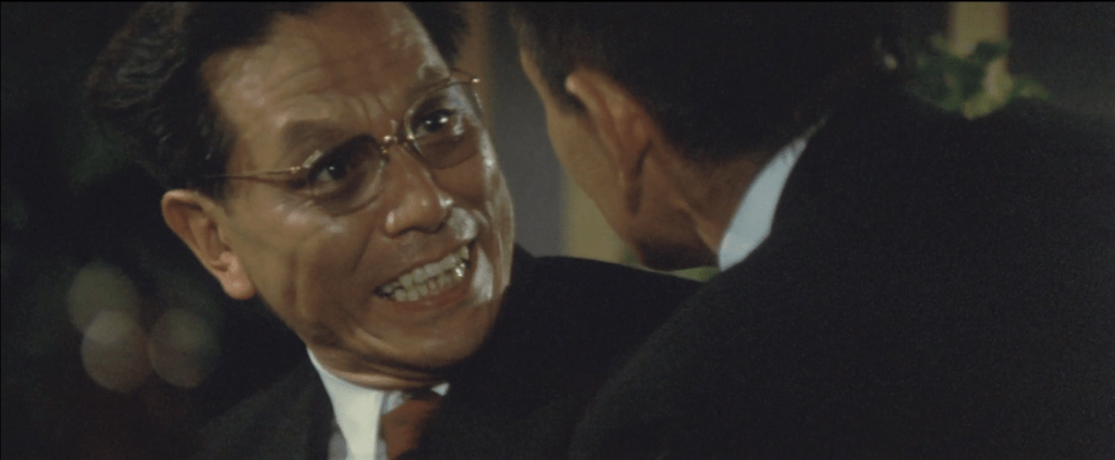 Yamamori complains that Hirono likes Uchimoto more than him, and the motive becomes clear: payback from Yamamori to Hirono for exchanging vows with his enemy – with a bit of profit skimmed on top for good measure. Hirono, furious, threatens Yamamori before leaving – only to witness Yamamori being thanked by Eda for taking care of his men (while Hirono‘s were left destitute as always), and giving Eda a large sum of money as a welcome back present, all but waving the wad of cash in Hirono‘s face. Hirono, with the patience of a saint, leaves calmly.