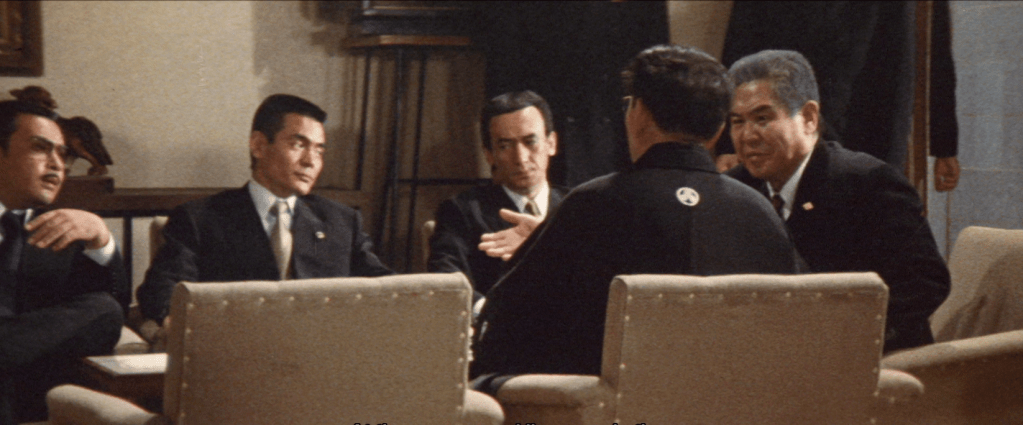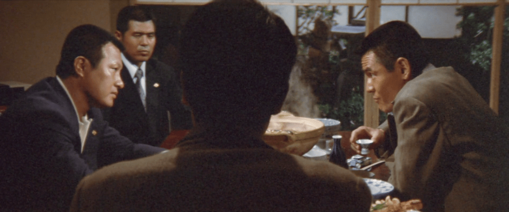 In June 1963, the Yamamori / Shinwa alliance goes ahead, mediated by Toyoda. In response, the Akashi family formalises and alliance with the Kojima family, a powerful Okayama group, and organises a trip to meet the Yamamori underbosses – aiming to force them to reconciliate with Uchimoto.