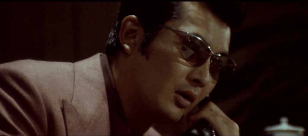As a feverish and very bruised Kuramoto recovers, Hirono, finally calm, comes in to explain his anger at this yakuza faux-pas: killing your rivals doesn’t mean victory in these modern yakuza times, and therefore this act wa spointless and could mean serious trouble. The phone ring to interrupt the wise lecture: it’s Takeda, asking Hirono how his meeting with Iwai went.