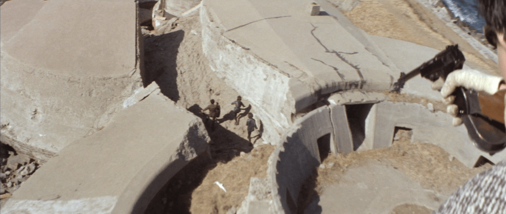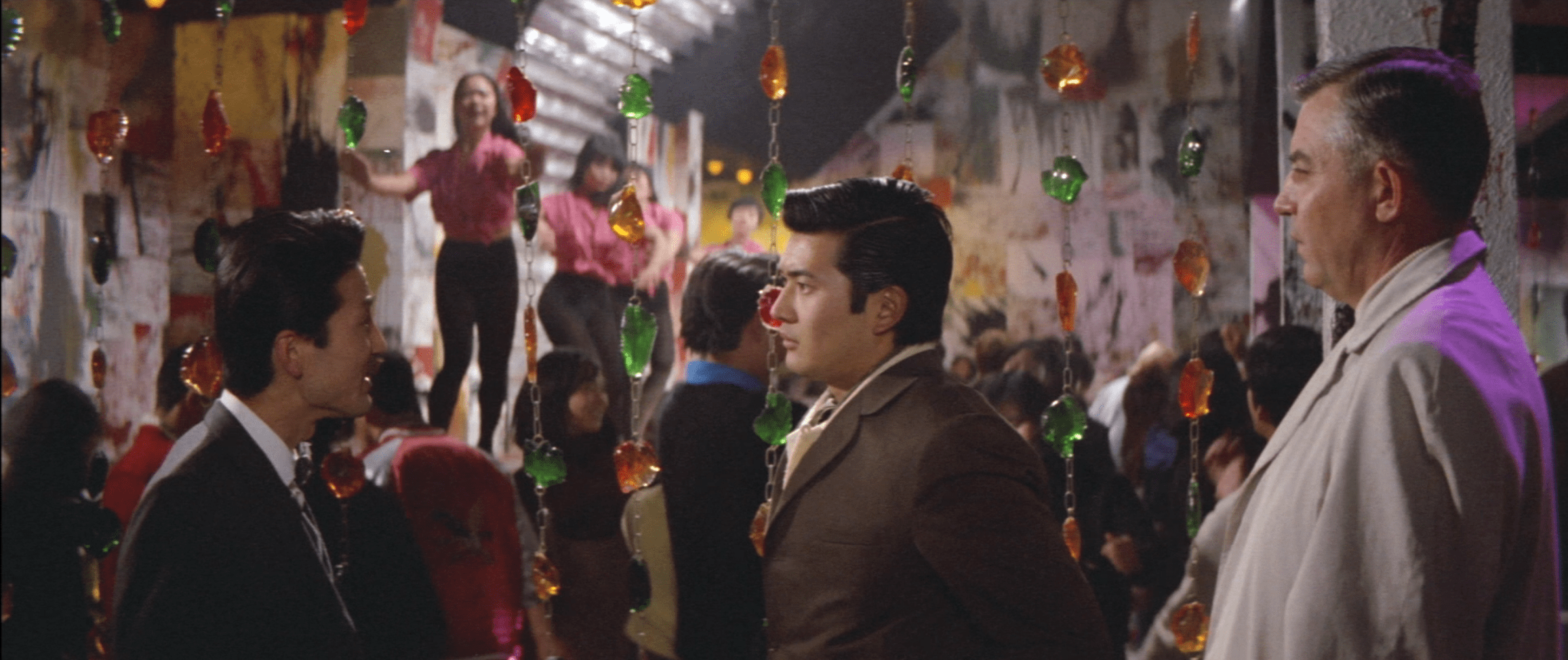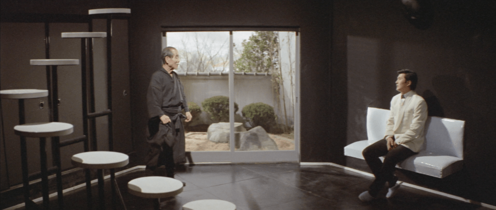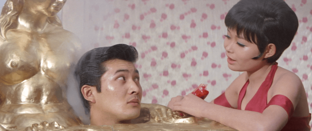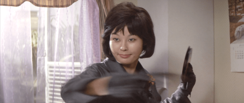 As Hondo brandishes his new toy, distracting both the Black Tight Killers and the viewer’s attention, the gangsters discreetly untie Yoriko and take her away…