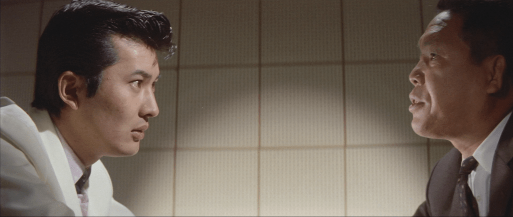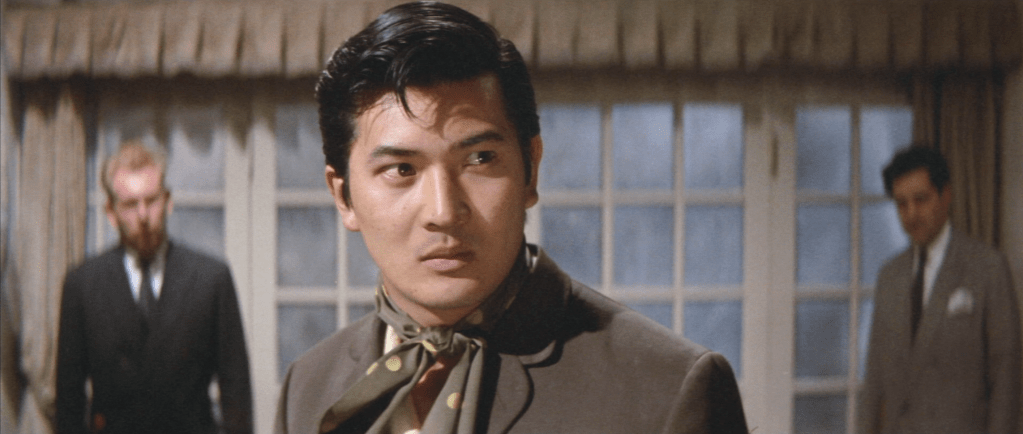 Before the gangsters can make a single move, Hondo and Akiko jump on the group, freeing Yoshie and both enacting vengeance: Hondo on Sabu who mistreated Yoriko, and Akiko on the gangster who abused Yoshie. But the greatest vengeance comes from Yoshie herself who calmly guns down every single gangster to death, with the sober (and sinister) explanation: “They mistreated me”. Hondo and Akiko silently look on, fully aware of the implication of this statement.