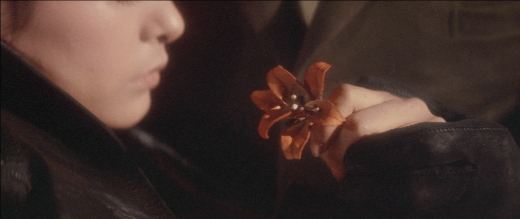 Hondo, worried about Natsuko, decides to jump off the car to divert the gangsters’ attention, asking her to keep driving and save herself. But while the gangsters’ shots do miss Hondo, the dynamite does not miss Natsuko‘s car, which bursts into a colourful explosion, leaving only a lily flower behind. “She was a nice woman” comments Hondo sorrowfully, lily in hand.