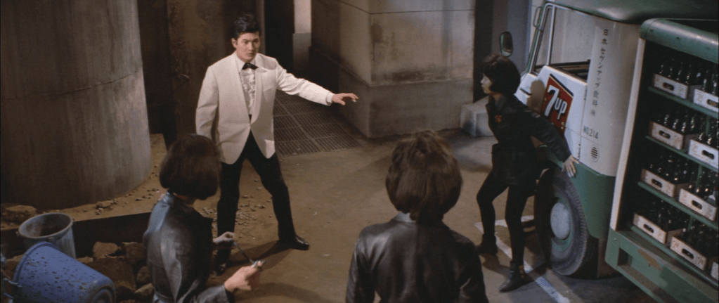 Based on a frankly nonsensical plot (international law specialists do not interact), Three Seconds Before Explosion is carried by the numerous set pieces and stunts performed by the ever-bouncy Kobayashi, and by the will they/won’t they rivalry between the old spy friends. But stripping away the humour, glamour, and clever plot twists seen in previous Nikkatsu spy films does not leave much for Three Seconds to Explosion to do right. By 1967, the spy genre was well trodden and in need of a boost of imagination that Nikkatsu found itself unable to conjure here, and the film is a clear step back (and last step) for the Nikkatsu spy genre. While not a highlight in Kobayashi’s career or Nikkatsu’s catalogue, Three Seconds Before Explosion is an interesting insight into the studio’s gradual decline and over-reliance on winning formulas, which would further precipitate the studio’s bad fortunes four years later.